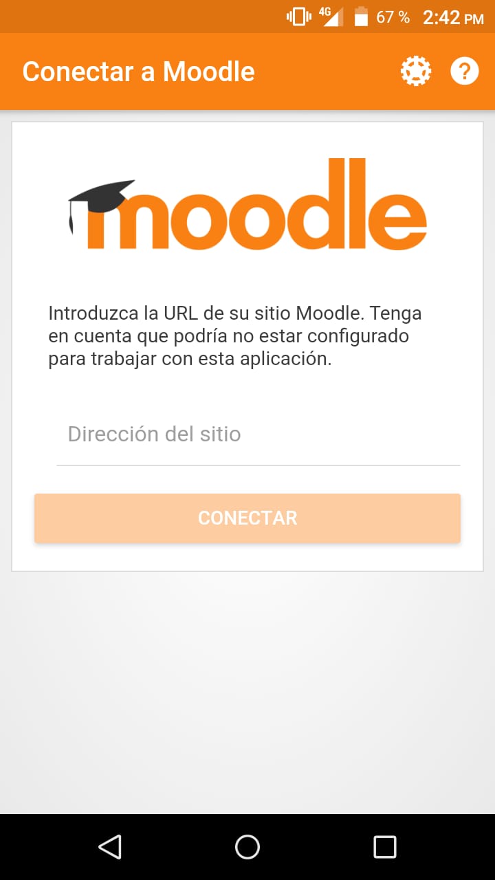 Una vez instalada la applicación Moodle en tu dispositivo, verás una pantalla de inicial.